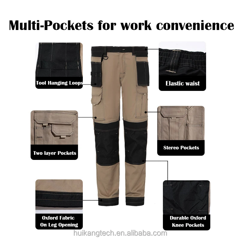 Work Pants for Men Multifunctional Work Trousers Workwear Pants With Reflective Tapes
